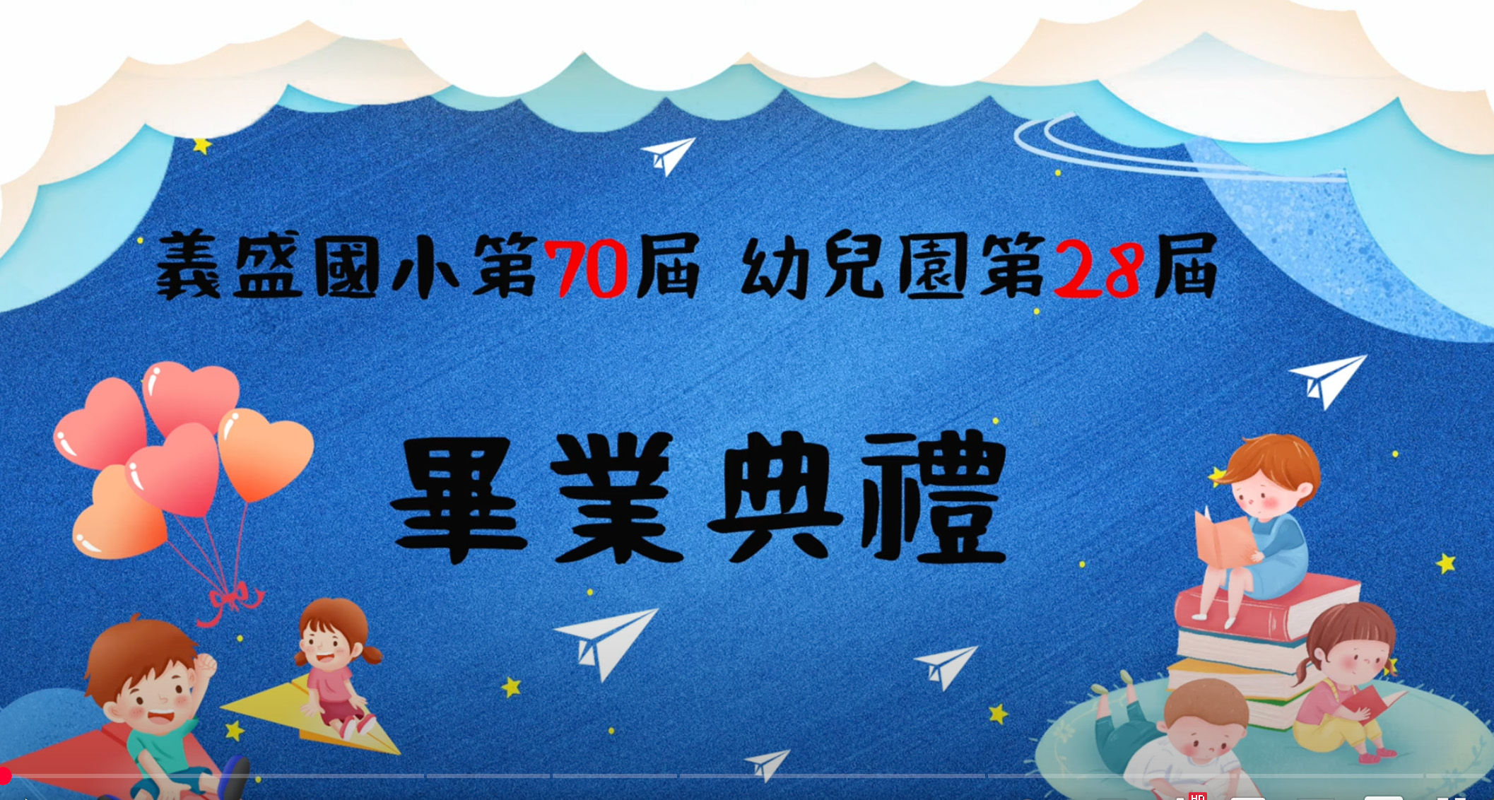 113學年度 義盛國小第70屆 x 幼兒園第28屆 | 畢業典禮 義盛國小、113學年度義盛國小第70屆與附設幼兒園第28屆畢業典禮於2025年6月12日舉行。典禮內容涵蓋幼兒園與國小畢業生進場、師長與來賓致詞、學生表演、頒獎、感恩禮、導師祝福、成長影片欣賞及泰雅成年禮等,場面溫馨感人,展現孩子的學習成果與文化傳承精神。。 朱芳慶ysps 播放影音 113學年度義盛國小第70屆與附設幼兒園第28屆畢業典禮於2025年6月12日舉行。典禮內容涵蓋幼兒園與國小畢業生進場、師長與來賓致詞、學生表演、頒獎、感恩禮、導師祝福、成長影片欣賞及泰雅成年禮等,場面溫馨感人,展現孩子的學習成果與文化傳承精神。00:00 ~29:45 典禮開始、畢業生進場、長官來賓致詞29:45 ~38:27 幼兒園表演、幼兒園頒獎38:28 ~ 47:15幼兒園畢業生致詞、感恩禮、畢業生家長致詞 47:15 ~ 1:08:53 國小畢業生表演、頒獎、致詞 1:08:53 ~ 1:26:26 致贈感恩禮、在校生祝福、導師祝福、畢業生成長影片欣賞 1:26:26 ~ 1:39:30 泰雅成年禮、師長感謝禮、畢業祝福歌合唱、畢業生離場 1:39:30 ~ 畢業典禮活動花絮影片 u8770082025-08-19T20:51:25+08:00